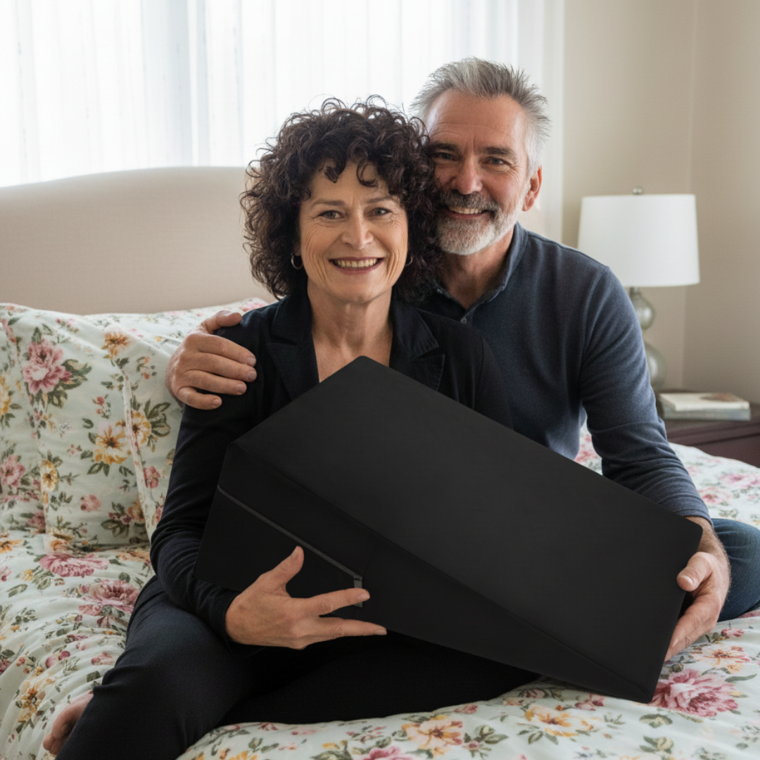 The Moodie Intimacy Pillow is precision-engineered at 27° - the exact angle that removes strain and improves positioning. When physical discomfort is eliminated, natural desire often returns.